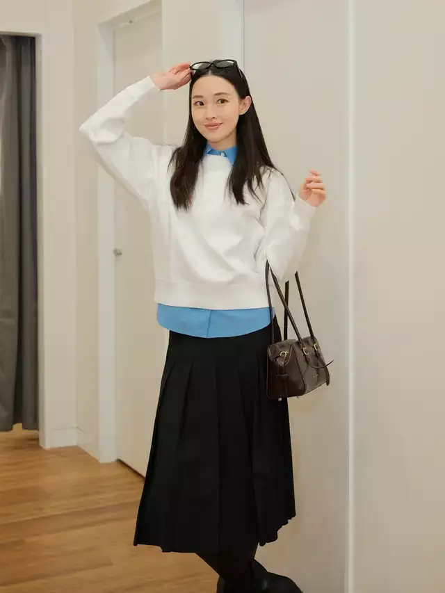 Tips③:“学院风”的压褶短裙穿搭,更显年轻