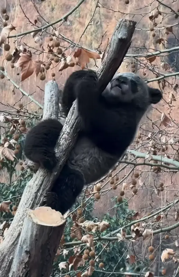 它趴在树枝上,原本洁白的毛发染得黢黑,小脸也灰扑扑的,不少人调侃:“这是熊猫还是黑熊?”“建议查一下,是不是偷偷去挖煤了!”